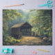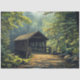 L'image montre un charmant pont couvert en bois niché dans une forêt luxuriante et verdoyante. Le pont est construit avec des poutres en bois et a un toit incliné en bardeaux rouges. Il s'étend sur un petit ruisseau clair, avec la lumière du soleil qui filtre à travers la dense canopée d'arbres, jetant une lumière chaude et appliquée sur le pont et le feuillage environnant. La forêt est animée et vivante avec des nuances de vert, créant une atmosphère sereine et tranquille. Le pont et son cadre naturel évoquent un charme rustique et une solitude paisible. pont en bois couvert, forêt verdoyante, toit en bardeaux rouges, ruisseau clair, filtre de lumière du soleil, couvert dense, lumière applaudissée, feuillage vibrant, atmosphère sereine, charme rustique, solitude paisible, cadre naturel, pont pittoresque, nature tranquille.