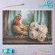Inspirez vos projets créatifs avec charme rustique et élégance grâce à cette superbe conception de papier de découpage. Elle est ornée d'une poule mouchetée, perchée sur un rebord patiné en bois, agrémentée de pivoines blanches luxuriantes et encadrée de rideaux à fleurs de style vintage. La vue sereine sur le jardin et les tons pastel doux créent une esthétique de ferme intemporelle, ce qui le rend parfait pour les mariages, l'artisanat do-it-yourself, l'emballage cadeau ou la décoration maison. Ajoutez une touche de sophistication rurale à vos créations grâce à ce design unique.