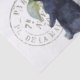 Trois lapins aux fleurs bleues d'hydrangée avec texte "carte postale", cachet postal et marque d'annulation en arrière - plan. Idéal pour le découpage et l'artisanat de Pâques.