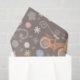 Ceci conception cru-inspirée de sac à farine incorpore des bicyclettes de rétro-style et des paniers des fleurs colorées.