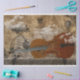 Un bel ancien violoncelle est le point focal du scénario surréaliste de ce papier de tissu, qui représente une montre de poche antique défiant la gravité, un manuscrit de musique Bach, et des machines volantes improbables glissant dans les nuages, entre autres éléments inattendus : une image appropriée et évocatrice pour offrir un cadeau à un violoncelliste ou autre amoureux de la musique.