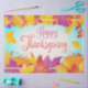 Bon thanksgiving en papier Set de table de vacances Feuilles d'érable, motif en bois bleu RETRO. Saison Automne Romantique Collection décorative, Design tendance Set de table de papier ornemental avec Citrouille, Automne rouge, jaune, orange feuilles d'érable, feuille d'or, sur bois rétro arrière - plan rustique. Bon thanksgiving Calligraphie lettrage. Articles d'artisanat et de fête > Fournitures d'enveloppement de cadeaux > Cadeaux en papier de tissus et cadeaux d'automne design tendance Thanksgiving Party Décoration.
