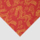 Un papier de tissu rouge et or avec un motif de dragon unique à l'avant et à l'arrière de la cravate.
