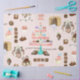 Des gâteries sucrées avec une tour de cupcakes, gâteaux et chocolats faits main et le texte typographique qui dit : "Tant de desserts, si peu de temps !" Peint en aquarelle et conçu en un motif à demi-goutte qui est entièrement extensible. Arrière - plan rose pâle et doux avec des arroses blanches. Toutes les oeuvres ont été dessinées graphiquement par Audrey Jeanne Roberts, artiste et designer de renommée internationale, copyright.