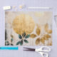 Des feuilles verts et dorés décorent ce papier de tissu moderne avec une touche asiatique. Utilisation pour les projets de découpage, les journaux de jonc, le collage ou l'emballage cadeau.