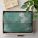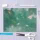 Peinture acrylique liquide abstraite en verts, blanc, et or.