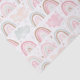 Papier de tissu moderne et capricieux avec illustration dessinée à la main de arc-en-ciel rose pastel avec pluie et nuages autour. Parfait pour un emballage cadeau d'anniversaire ou de baby shower.
