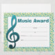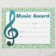 Papier Music Award Studio Certificat d'étudiant