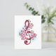 Pink treble clef with delicate, detailed pink Japanese cherry blossoms against white background painted over with light blue paint Blooming pink sakura.