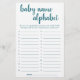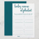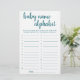 "ABC Race Baby Name Game" Un baby shower simple ou un genre révèle une carte de jeu de course de l'alphabet de parti avec un script amusant et décontracté écrit à la main. Le design classique comprend une superposition de la typographie de citation à la main moderne. Pour d'autres couleurs ou produits correspondants, veuillez visiter le magasin JustFharryn Zazzle, ou contacter le concepteur, c/o Fharryn@yahoo.com Tous droits réservés. #bohochic #zazzlemade