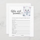 Célébrez avec cette soirée baby shower à thème ours en peluche ! Aquarelle mignon bébé ours polaire. Éléments correspondants disponibles. Réponses : CRAVINGS, PLEIN, PACIFICATEUR, BOUTEILLE, LUMIÈRE NOCTURNE, LULLABY, STROLLER, ÉPIDURAL, BRÛLE, CHAISE HAUTE, SAC DE DIAPER, ÉPONSE