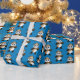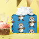 Geschenkpapier in einer blauen Hintergrundfarbe mit einem niedlichen Panda-Bärendruck. Matte Papier angezeigt. Passen Sie dieses Papier an oder kaufen Sie, wie es ist.