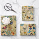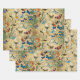 Papillons botaniques vintages, oiseaux et fleurs aux couleurs orange, rouge, bleu, vert, jaune, rose, noir et marron sur un motif damassé élégant de couleur or. Idéal pour l'artisanat du papier, le découpage et les cadeaux d'emballage. Conçu par © Tim Coffey.