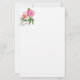 Stationery-Bogen wird im weißen Basispapier mit einem schönen rosafarbenen Peonprint an der Ecke gezeigt. Umschlag enthalten Anpassen Sie dieses Objekt oder kaufen Sie, wie es ist. Börsenbild freepik.com
