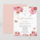 Typographie florale blanche et de script rose millénaire. Roses roses et papillon au-dessus de la frontière. Confirmation des invitations budgétaires de célébration florale. Vous pouvez ajouter des photos au verso ou du texte supplémentaire si nécessaire. Frugal, budget, invitations abordables.