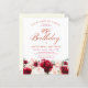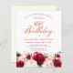 Roses rouges et pivoines roses rousses sont nichées dans des feuilles vert foncé sur cette magnifique et unique invitation à l'anniversaire.