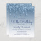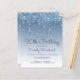 Cette invitation branchée à 90ème anniversaire présente une bordure brillante bleue faux goutte de parties scintillant et bleu ombre arrière - plan. Les mots "90th Birthday" et le nom de l'invité d'honneur apparaissent dans un script décontracté en bleu manuscrit, le reste du texte personnalisable en bleu sans serif. La même conception de goutte de parties scintillant bleue apparaît à l'envers.