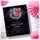 Invitation sur papier de la partie Mardi Gras sur mesure. Doté d'un masque de mascarade Mardi Gras coloré et d'une fausse impression de parties scintillant sur un arrière - plan noir.