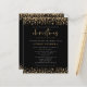 Parties scintillant d'or budget Noël Parti Progressiste. Un prix économique PETIT 4,5 po x 5,6 po alternatif. Disponible dans un STOCK de CARTE SEMI GLOSS 110 lb d'épaisseur similaire à une carte postale. Il y a UN par feuille. Gold Faux Parties scintillant Noël fête Invitation noir. Une bordure en parties scintillant de glam est sur chaque côté haut et bas, et Noël est dans un ensemble en minuscules script de style écriture manuscrite. Personnalisez facilement le texte à vos propres détails. Vous pouvez également modifier le texte et les couleurs arrière - plans via l'option customiser plus si vous le souhaitez.