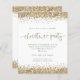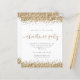 Parties scintillant d'or Script de Noël Invitation de fête. Un prix économique PETIT 4,5 po x 5,6 po alternatif. Disponible dans un STOCK SEMI-GLOSS 110 lb CARD qui est l'option par défaut (plus épais pour les invitations), OU un STOCK SATIN FINISH 80 lb THINNER PAPER (idéal pour les boîtiers). Les enveloppes sont en option et légèrement plus grandes que la taille de la carte. Style Glam pour votre fête de vacances avec fausse parties scintillant or bordant les bords supérieur et inférieur des deux côtés et dans un script de style manuscrit pour la typographie d'occasion. Personnalisez facilement le texte à vos propres détails.