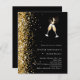 Pour une Fête des mariées. Un arrière - plan noir. Décoré de parties scintillant en faux or et d'une paire de flûtes. Personnalisez et ajoutez un nom et des détails du parti. 1 feuille = 1 invite imprimé bord à bord.