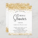 Une arrière - plan blanche design. Décoré avec de la poussière de parties scintillant en faux or. Personnalisez et ajoutez un nom et des détails du parti. Le nom est écrit avec un script de style manuscrit