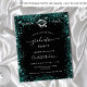 Une invitation moderne et élégante à la remise des diplômes. Un arrière - plan noir décoré de poussière de parties scintillant turquoise et verte. Personnalisez et ajoutez un nom, une année et des détails.