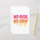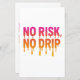 Citation en gras "No Risk, No Drip" dans le style "drip-text" tendance. Idéal pour les amateurs de vêtements de rue, les animateurs et les créateurs qui prennent le risque de briller. Idéal pour les tee - shirts, les sweat - shirts à capuche, les autocollants et plus de produits.