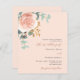 Un arrière - plan de couleur pêche. Décoré d'un rose doré floral, de feuilles d'eucalyptus vert aquarellés, de sprigs, de verdure et d'un faux doré. Personnalisez et ajoutez vos noms et les détails du mariage. Retour : ajoutez l'url de votre site Web mariage au code QR pour plus de détails et/ou RSVP. 1 feuille = 1 invitation imprimé bord à bord.