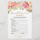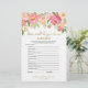 Ce jeu rose pêche "comment bien connaissez-vous la mariée" est parfait pour une douche nuptiale élégante. Le devant de la carte de jeu comporte "comment connaissez-vous bien la mariée", et le dos de la carte contient "ce qui est dans votre sac à main". Le design floral présente un bel agencement de pivoines d'aquarelle dans des tons de rougeur et de corail assortis à de somptueuses calligraphies de feuilles d'or imitation. Personnalisez l'avant de la carte avec le nom de l'épouse et la date de la douche de l'épouse. Remarque : Ce design ne comporte pas de véritable feuille d'or. C'est un graphisme de haute qualité fait pour ressembler à du papier doré.