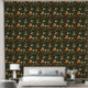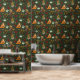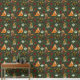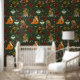 Renard rouge, lapin, hibou, lune, martre de pin, feuilles d'automne, citrouilles, fleurs et glands, le tout dans un décor vert profond
