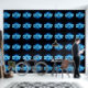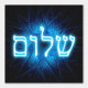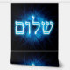 Lumineuse lecture de texte hébraïque bleu et blanc, "Shalom" (ש ל ו - paix) superposée sur une élégante image fractale, bleue, à l'aspect gravé d'une Étoile de David.