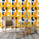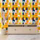 Papier Peint Bleu foncé Jaune Orange Blancs Motif d'art