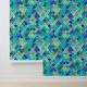This wallpaper design features a vibrant geometric mosaic pattern in refreshing shades of blue, teal, aqua, and green. The diamond-shaped tiles create a modern, rhythmic texture that adds a sense of calm and playfulness to the space—perfect for nurseries, coastal interiors, or any room needing a pop of cool, ocean-inspired color.