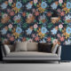 Papier Peint Blue Green Big Bold Flower Motif