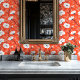 Make a vibrant statement with this bold orange peel and stick wallpaper featuring crisp white daisies, deep navy stems, and soft blush foliage. The retro-inspired color palette and striking contrast bring playful energy and vintage flair to any space—perfect for accent walls, creative studios, or eclectic interiors. This removable wallpaper applies easily, peels off cleanly, and is ideal for renters or DIY decorators looking to add a fearless pop of color with a modern botanical twist.