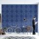 Blue and black artwork. Mandala design with decorative botanical elements made from lichens.