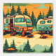 Papier Peint Campeurs RV Retro nichés dans des pins