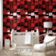 La conception de papier peint CUBES contient des cubes de couleur rouge, et certains cubes sort