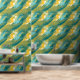 Cette oeuvre présente un motif dynamique et dynamique de points et de coups de pinceau, créant un effet visuel saisissant. La composition est composée d'une palette de couleurs audacieuses, turquoises, jaunes et blanches, avec des points variant en taille et en densité pour former des vagues et des gradients à travers la toile. L'interaction entre les points ronds et lisses et les coups de pinceau rugueux et rampants ajoute un sens du mouvement et du rythme à la pièce, évoquant une esthétique rétro inspirée du pop-art. Le design est à la fois ludique et audacieux, avec un sens de l'abstraction moderne.