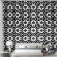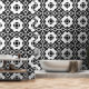 Ce papier peint peel and stick présente un design audacieux et complexe qui combine sans effort des éléments modernes et classiques. La motif présente un contraste noir et blanc saisissant, créant un effet visuel élégant. Les formes géométriques interconnectées, y compris les diamants et les motifs floraux stylisés, forment un motif extensible à travers la surface. Ce design sophistiqué peut transformer n'importe quelle pièce en une pièce de déclaration sans envahir l'espace. Parfait pour ceux qui souhaitent rehausser leur décoration intérieure avec un minimum d'effort, ce papier peint apporte une touche d'élégance et de modernité à tout endroit.