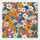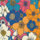 Cette oeuvre éclaire d'un agencement dense et animé de fleurs vibrantes, créant une riche tapisserie de couleurs et de formes. Les motifs floraux se déclinent en orange, bleu, rose et blanc, entrelacés par des lignes délicates qui ajoutent détails et texture. Les pétales qui se chevauchent et les différentes tailles des fleurs donnent de la profondeur et de l'énergie au design, évoquant un sentiment d'abondance et de célébration. La composition est à la fois ludique et complexe, avec un équilibre dynamique de la couleur et de la forme.