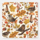 Motif d'automne peint à la main avec divers feuilles automnaux, baies, glands, oiseaux et champignons