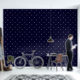 Papier Peint Fleur blanche simple Motif Floral bleu minimal