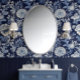 Papier Peint Fleur de minuit - Bleu et blanc - Traditionnel