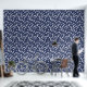 Illustration vectorielle de fleurs de cerisier blanc stylisé sakura et tourbillons sur arrière - plan bleu. Inspiré par les motifs japonais traditionnels de tissu kimono.
