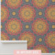Papier Peint Fleurs géométriques stylisées en gris orange