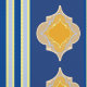 Elégant mélange de formes marocaines jaunes sur des rayures bleues ou vertes plus bleues Ce design est un point de vue unique sur les formes marocaines Alternatives bandes bleues sont plus apaisantes et moins "occupées" que d'utiliser des formes carrelées marocaines par elles-mêmes