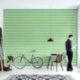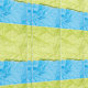 Symmetrical grid of crumpled paper textures in alternating greenish-yellow and light blue, creating a vibrant, tactile striped pattern with depth and visual rhythm