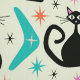 Papier Peint Mid Century Black Atomic Cats with Boomerangs